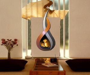 This fireplace has three stylised flames intertwining to illustrate the vitality of fire.