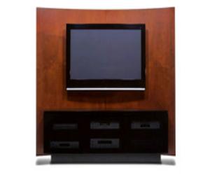 The Alcove is designed for homes with discerning taste, with a striking curved style for optimum viewing. Real Cherry veneer construction and large multimedia lower and side storage compartments make the Alcove the perfect choice in high-end home theater design.