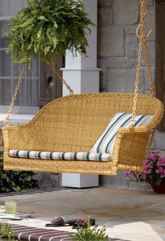Enjoy the timeless appeal of a wicker swing on your porch or patio, or under a shade tree. This all-weather wicker furniture offers a classic look without fear of the elements. Expertly crafted of sturdy resin, this quality hand-woven wicker porch swing will hold up to UV rays, rain, sand and dirt. It will last season after season!