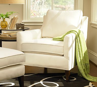 This  favorite new upholstered armchair has clean, modern lines.  Slim seat and back cushions give the Arlington Chair exceptional comfort without compromising its style.