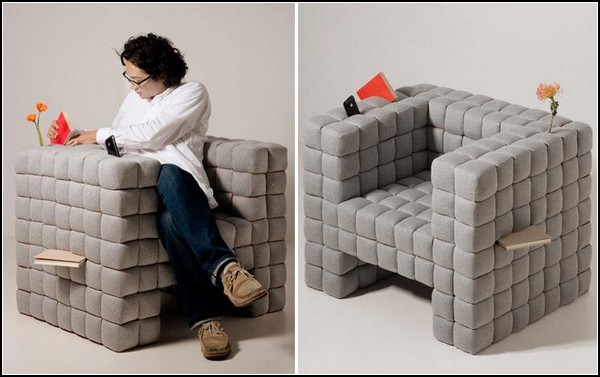 Lovers of good literature can put a book there, lovers of good coffee or tea – a cup of hot, aromatic beverage. Lost in Sofa chair of the studio Daisuke Motogi Architecture can serve as a stand for the TV remote, cell phone, roses, a gift for you loved one, audio player, and even oversized for handheld gadgets Internet Tablet iPad (and no need special T-shirts and dresses with a pocket for him).