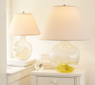 Create a showcase of objects inside the hand blown glass lamp. Its shapely profile recalls that of antique wine jugs.