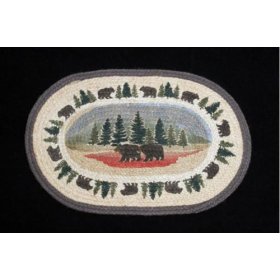 Bears and Trees Wildlife Lodge Decor Oval Jute Rug