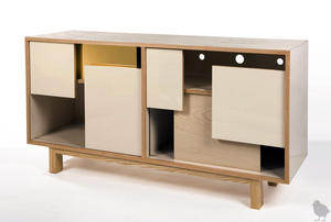 This Block Party shelving unit is both an interactive piece of art and a fully functional storage container.