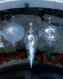 The Blue Outdoor Ornaments are a great and quite interesting and inviting addition to your front door, a tree outside, or even an outdoor Christmas tree.