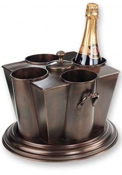 Place ice in the lidded compartment while setting 4 of your favorite wine bottles in the open slots of this kitchen decor. With quality materials and elegant detailing, this home decor is an excellent choice.