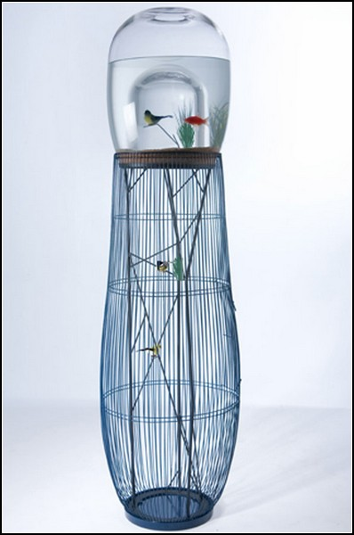 Duplex designed by the designer Constance Guisset, represents a kind of a strange design that consists of a high cage, topped with a small aquarium. And the aquarium “sitting” astride a cage, like a cap, so that if the bird will soar higher, it will appear in a glass case, in company with the fishes.
