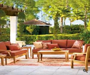 The deep seating set is designed by Frontgate and is built for a lifetime of use. Skilled craftsmen combine plantation-grown premium teak with concealed stainless steel hardware to create this pinnacle of open-air luxury.