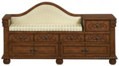 This entryway furniture displays exquisite detailing, as well as an elegantly curved back and stylish trim. And with drawer and cabinet space, you can store throws and other belongings inside this handsome bench.