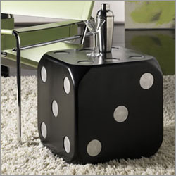 This impressive cocktail table boast a painted black finish with aluminum inlays replicating dice patterns. This cocktail table also offers a unique feature as the inlays of this cocktail table can also be used as coasters.