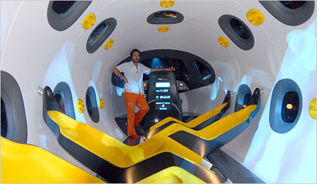 And now, he had an excellent opportunity to make, as the designer says, “the first significant step” towards achieving his goal. He developed the interior of aircraft that is half plane, half rocket for a company EADS Astrium. The company plans to make 3-hour tourist flights into space. The expected ticket price per passenger ranges from 200 to 265 thousand dollars. The first flight is planned for 2012. Presentation of the aircraft was held recently in Paris.