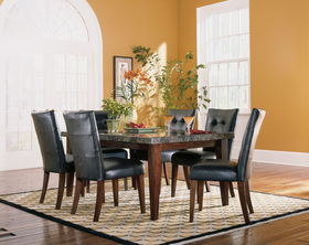 With flared saber leg design and comfortable brown leather upholstered chairs, this collection will transform the atmosphere of any room. Bring your contemporary style to the next level with this stylish dining room collection.