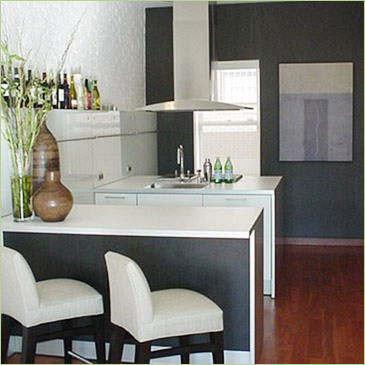 Clean, contemporary lines and a simple monochromatic color scheme help to keep this open-plan kitchen area uncluttered, sophisticated and modern. This is a kitchen that everyone will enjoy due to the simple, but very elegant design and gorgeous over all look.