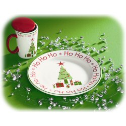 Leave cookies and cocoa out for Santa with this charming set. The plate has the image of a Christmas tree and presents with the work “Ho Ho Ho” printed around the rim.