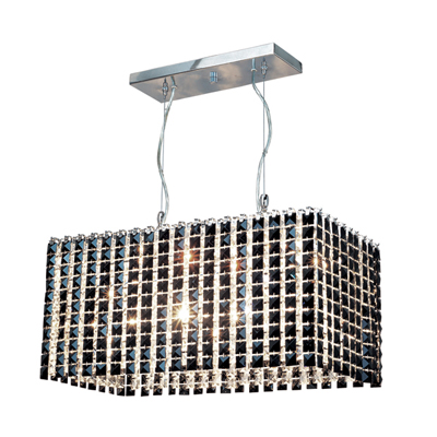 This attractive Crystal Black Ice Four-Light Pendant comes in metal chrome finish and traditional crystal shade. This black ice brightly crystal shade gives it a sophisticated look.