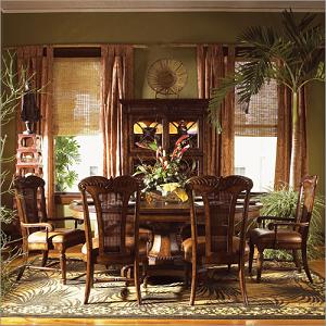 This elegant set will bring the sophistication of an island villa to your dining room with its beautifully carved and detailed features as well as adding high function.