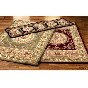 Display your sense of majesty with the hand-carved Empire Medallion Rug. An ornate central medallion with a floral bouquet dominates the solid interior field of the hand-tufted rugs. Luxurious 5/8″ thick rugs are handmade in China.