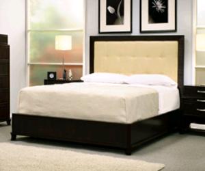 The iconic Epic Panel Platform Bed is a timeless piece of unyielding craftsmanship featuring a headboard upholstered in Khaki microfiber completed with an espresso finish.