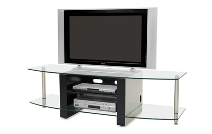 You definitely can’t go wrong with this stunning entertainment unit. The handsome Espresso body, made of solid wood, harmoniously blends with its softly curved tempered glass. ThisĀ flawless combination provides ample storage space for all your “toys”.