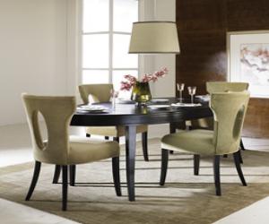 The Eyelet Dining Set rests on gently tapered espresso legs that bathe your dining room in artistic radiance.
