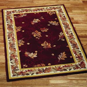 Bring autumn to your decor with handcrafted Fallen Leaves Rug Runner. Hand-tufted and hand-hooked, the lush, all-wool, 5/8″ thick rugs awaken your floors with a burst of color! Leaves and acorns are scattered across a burgundy field. The field is surrounded by two gold frames, flanking an inner ivory border filled with autumn leaves.