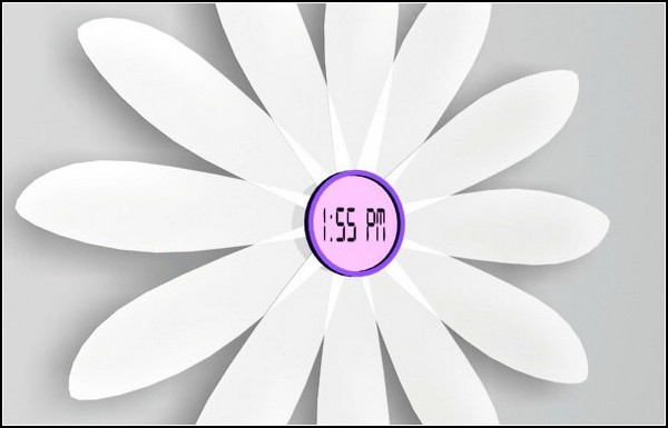 The function of minute hand in these unusual clock operates, of course, the petals of a flower. Each of them is responsible for five minutes of time. So if you see four blossoming petal, now twenty minutes to some hours, seven, then thirty-five, and so on.