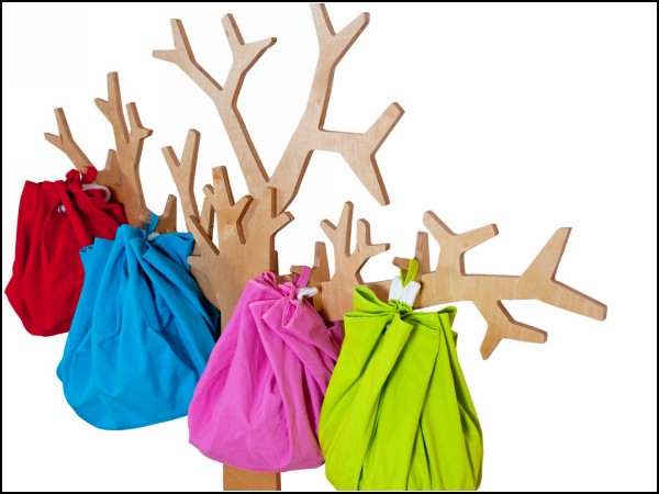With the set Fruut Sacks, colorful bags for toys, “fruit tree” actually turns into a fruit-bearing, and it will be easier to teach children to make everything in order, when they see how great it looks on the branches of these “fruits”. But, of course, you can do a normal package, or sew your own bags.