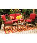 Relax on the patio with this four-piece seating and coffee table set. The Garden View Wicker Conversation Set is a great addition to your backyard or porch and you will fall in love with it!