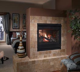 Contemporary styling and smaller design allows this see-through model to divide two intimate living areas such as a kitchen and dining, master bedroom and bath, study and family room.