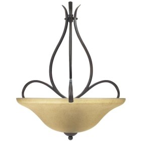 Elegantly crafted and superbly designed, this designer fixture from the Senneville collection is a classic addition to your decor. Made of amber-colored seeded glass, the shade is complemented by a decadent dark coffee finish. The end result is an eye-catching style that works with both traditional and contemporary home furnishings. This Globe three-light pendant is 17-1/4 inches wide and requires three medium base A15-type light bulbs, 60 watts each (sold separately). * Complements other Senneville fixtures or provides standalone sophistication, style