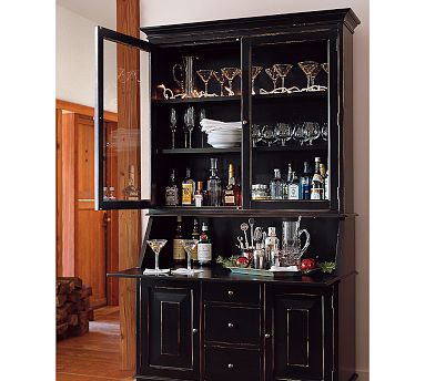 The Graham Bar and Hutch merges the quality and presence of heirlooms with exceptional versatility. The bar has a fold-down front that offers a generous work surface when open.