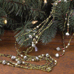 Multi-layered strands of royal green beads combine with pearls and silver embellishments to create this dazzling holiday decoration.