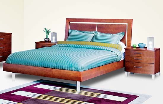 The Haddon Platform Bed mingles organic charm with contemporary style. Hand-selected cherry or dark walnut veneers coat the high quality woodwork, while sleek metal embellishments create a charming contrast on the headboard.