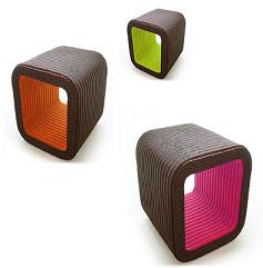 Hollow is composed of a pastel interior wrapped in a rich chocolate shell, which results in functional yet eye-catching footstools.