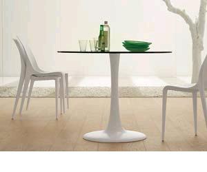 The Hugo Bistrot Dining Table is a romantic piece of bright furniture that showcases a perfect combination of two heterogeneous elements – polyurethane and glass.