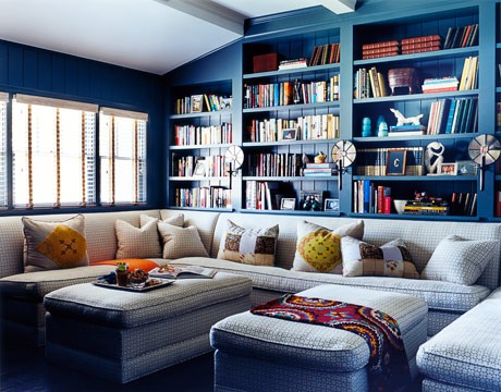 For the color solution of the interior a palatte of colors was chosen based on blue. The designer’s affection for the color has coincided with the one of the owner, who herself was a fan of the blue color. Thus blue built-in bookcase, blue upholstered furniture, emerald portieres and a dark blue floor in a dining room, wall-paper with blue colours in a bedroom appeared … Even a patio with a fireplace in the street is decorated in blue shades.