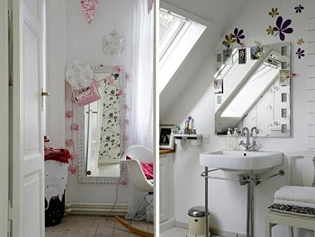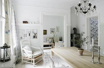 The color of the interior is rather neutral, and therefore much attention is drawn to furniture, wallpapers and other decorative ideas. White color gives a cozy, clean and fresh look to the house.