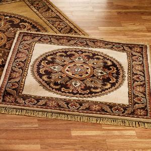Hand-tufted from 100% wool in India, Villa Forum Area Rugs feature a pattern of traditional elegance and character, enhanced by rich color tones. These .75″ thick rugs will be soft on your feet. Specify Black, Ivory, or Red.