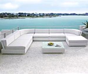 The wicker set is made by Emu and features the highest grade of synthetic, all weather wicker that is guaranteed to last a long time. The frames are of concealed aluminum, the cushions unzip for cleaning and are protected by Sunbrella fabric.
