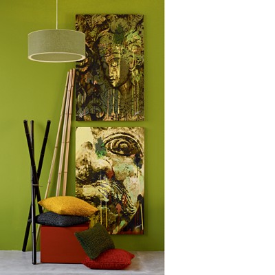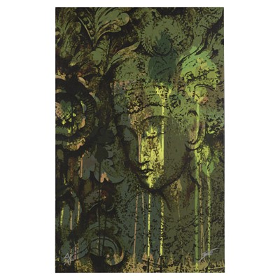 Eastern exposure. Artist Parvez Taj reincarnates the ancient god Vishnu via film software and UV ink on stretched unframed canvas. Amazing layering of color with urban grafitti edge. Jin is elegant, eyes closed in trance. Collectors take note: while all prints are signed by the artist, the first 200 prints purchased will be limited edition artist’s proofs.