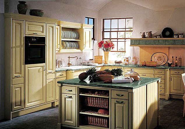 Also a linear or angular cuisine would be appropriate to use for the French Provence style. An important aspect is the proper observance of color and use of vintage elements. Kitchens made in this style should be created in pastel, muted tones. The use of light green, olive, cream, milk and lavender flowers are highly recommended. Bright colors should not be used in this kitchen. The color scheme should be endowed with hints of antiquity. Pure white color is not the best solution. It is better to choose cream or milk.