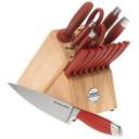 8-inch chef’s knife; 8-inch slicer, 8-inch bread knife, 5-1/2-inch utility knife, 3-1/2- inch utility knife; 8 steak knives; shears, sharpening steel; wood storage block.
