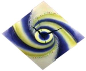 The Kronborg Wall Clock features the look of handmade glass in a beautiful swirling pattern of yellow and blue.