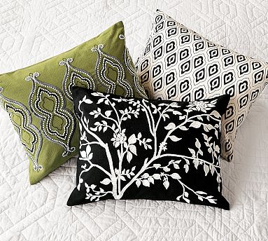 An artful rendering of peacock feathers is hand embroidered within pearl-embellished outlines on green cotton. The Kylie Pillow Covers are very beautiful, just gorgeous, and fantastic to have in your home as you will enjoy having them very, very much.