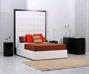 The lavish tufted leatherette headboard stands almost six feet tall, and elegantly matches any décor. The mattress sits snuggly atop a solid pine-slat mattress base for stylistic durability and added comfort.