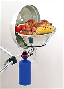 The grills use standard disposable 1-lb propane canisters or can adapt to onboard LPG (propane) or CNG (natural gas) systems.