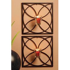 Detailed petal accents and strong, straight lines add a contemporary, sculptural look to the modern panels. Glass votive cups hold tigereye, vanilla-scented pillar candles for added ambiance and soft lighting and the sturdy wrought-iron construction with a rustic brown finish blends beautifully with any decor.