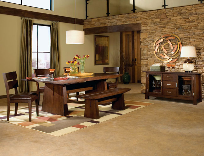 Modern Dark Brown Dining Room Set with Trestle Table