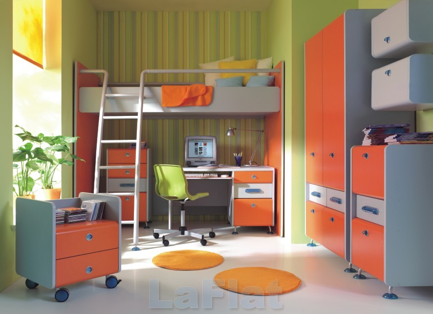 The bedroom furniture features Bunk Bed, Wardrobe, Chest of Drawers (set of 2) and Desk all in nice and eye-catching colors and design. So, there is everything that she/he needs.