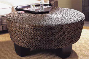 It even has a matching solid wood serving optional tray, letting you utilize it as a tabletop. Made of cushy abaca weave with a gray glaze, the ottoman is supported with extra-sturdy legs of plantation hardwood.
